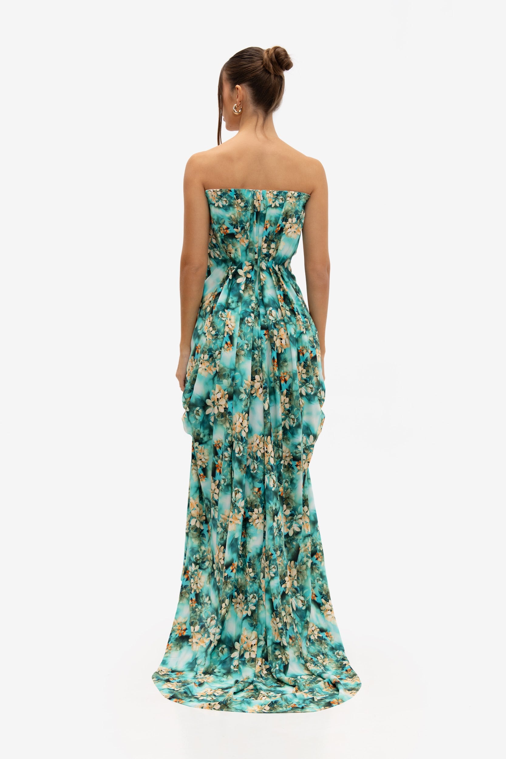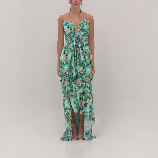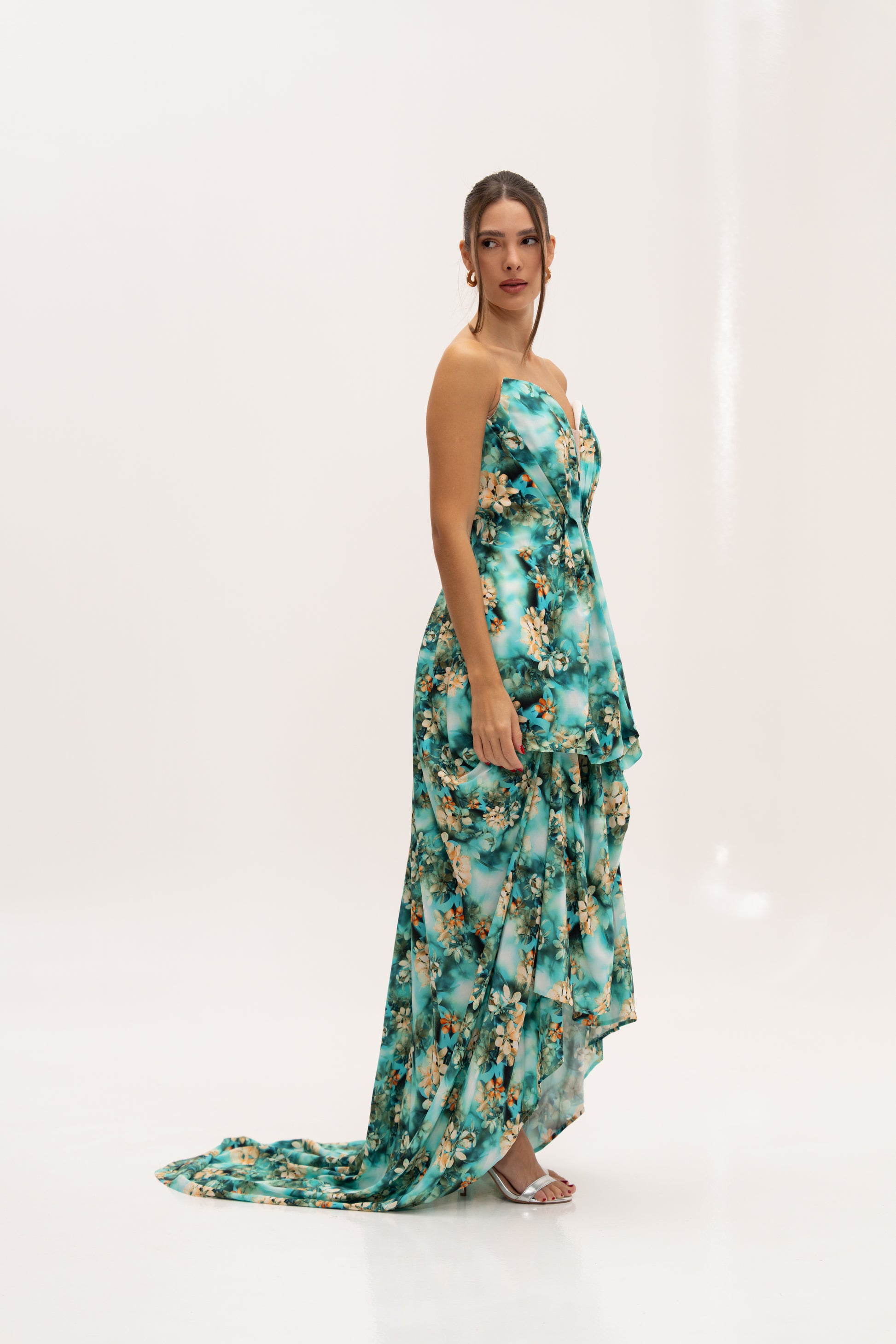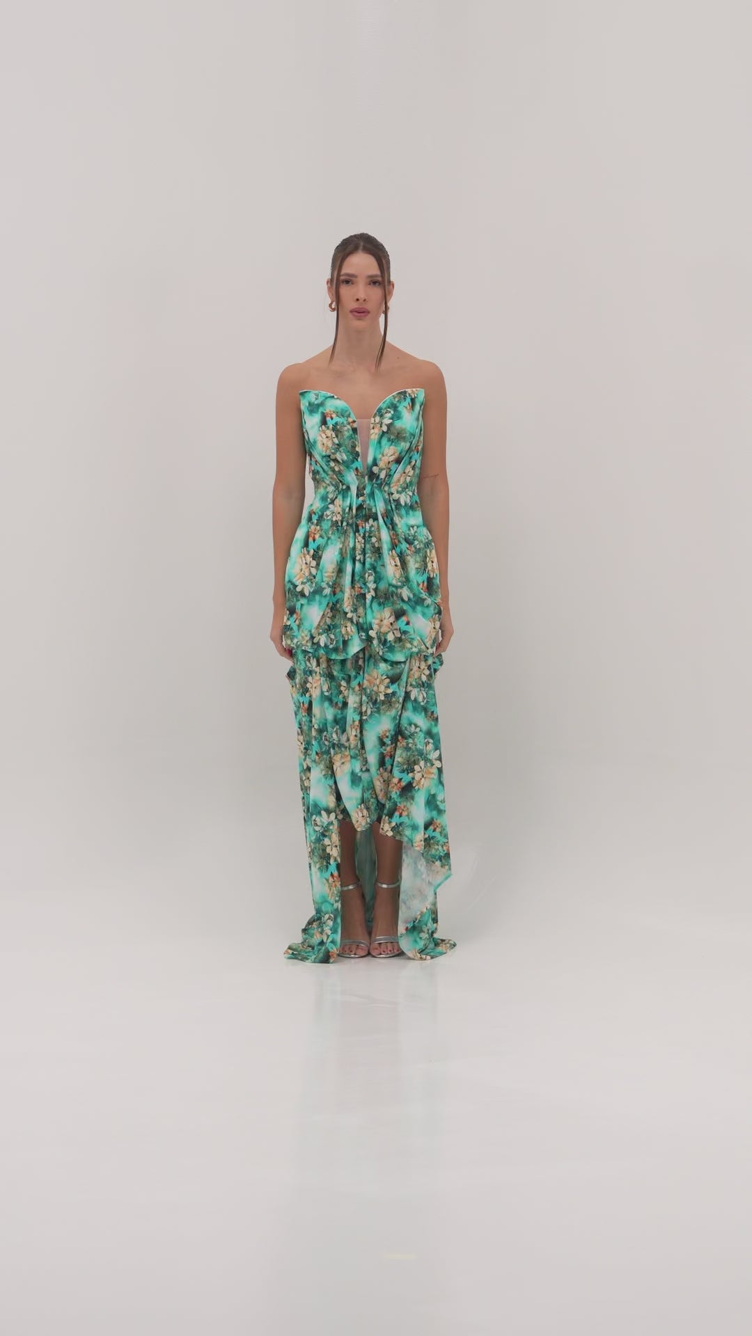 THE LAYERED ASPECT OF THE DRESS ADDS DIMENSION AND MOVEMENT, CREATING AN ELEGANT FLOW AS YOU WALK. THE LAYER CAN ADD VOLUME AND INTEREST TO THE DRESS WITHOUT OVERWHELMING THE WEARER, MAINTAINING A CHIC AND POLISHED APPEARANCES.